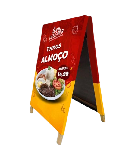 Cavalete de madeira personalizado com impressão em alta qualidade. Ideal para divulgar promoções, cardápios e campanhas em pontos estratégicos. Resistente, prático e com ótimo custo-benefício para destacar sua marca com impacto visual.